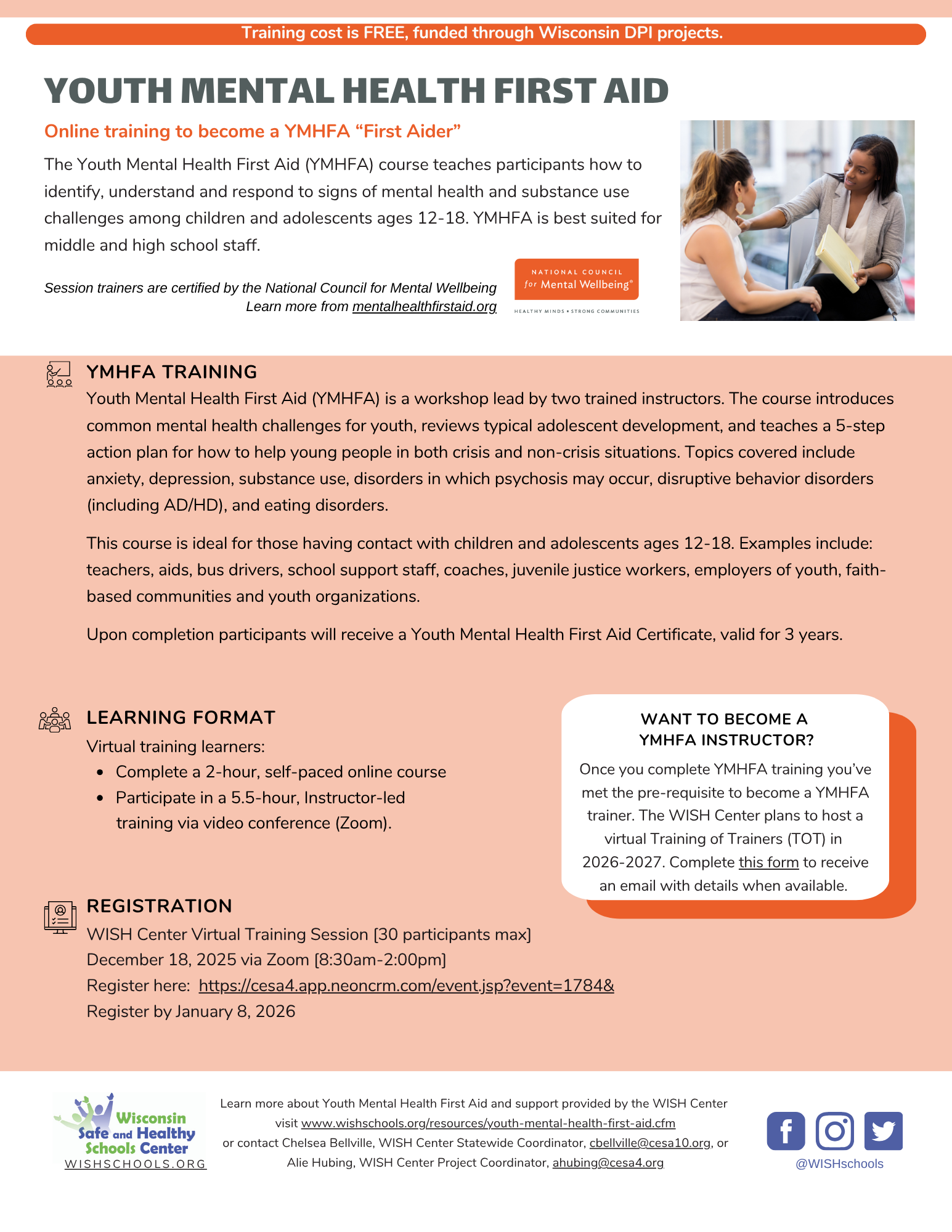 (Online) Youth Mental Health First Aid Training (YMHFA)